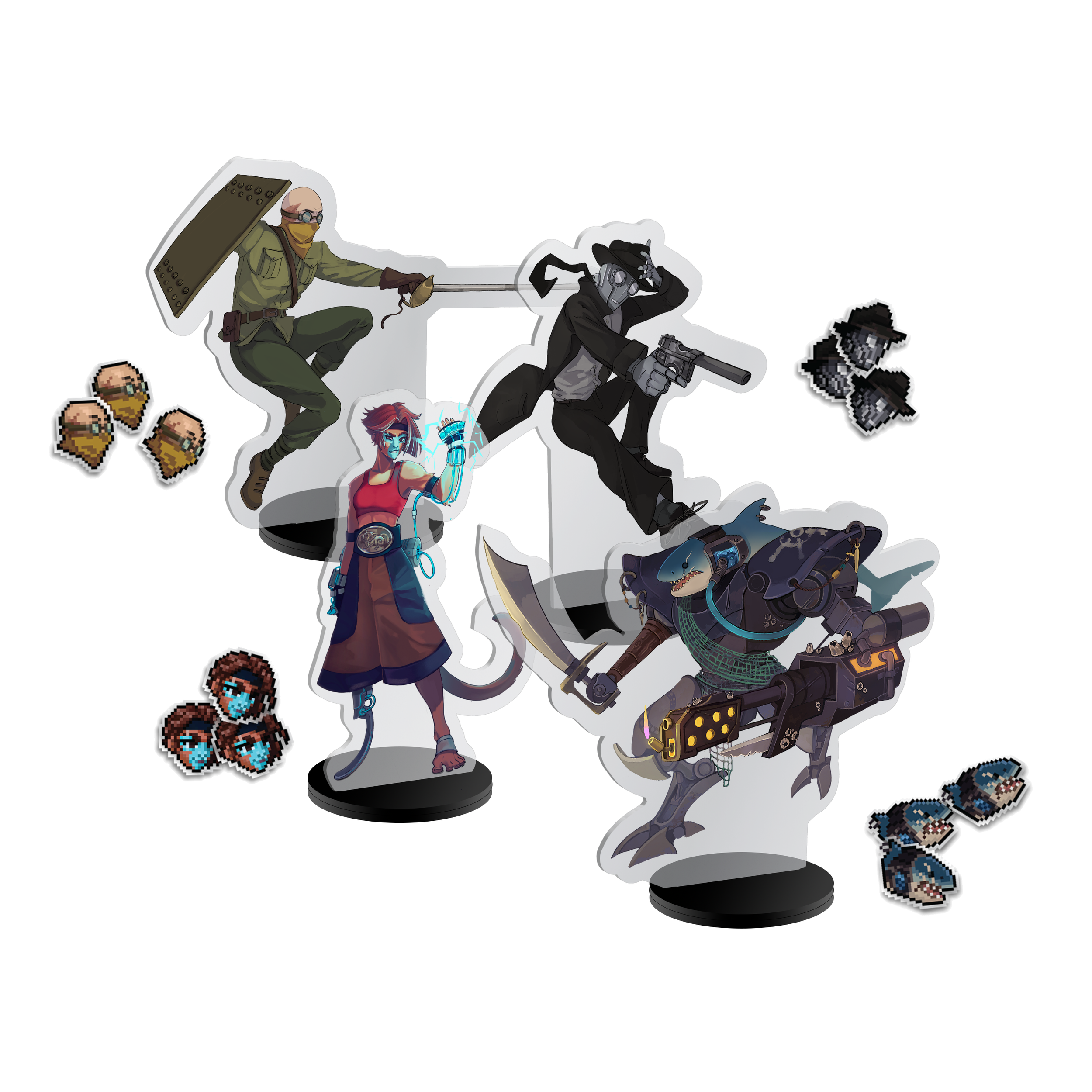 Leading the charge is the General Hale. Taken from Aerodome’s ACE universe, Augustine Hale knows what it’s like to be in a fight and comes prepared with her shield taken from the plate of a tank. Augustine is also the only character with a consistent way to deal splash damage with the Slash icon.